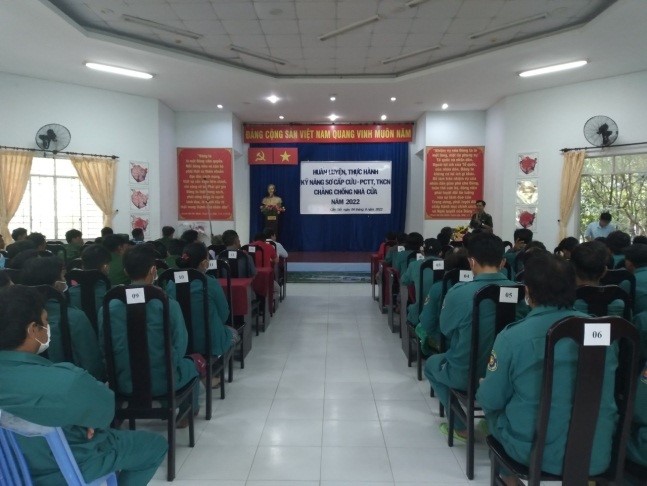 bản phục vụ cho công tác sơ cấp cứu, tìm kiếm cứu nạn như: băng bó vết thương, gãy xương, cách xử lý khi nạn nhân bị chảy máu trong hoặc máu ngoài; xử lý tình huống nạn nhân đuối nước như: động tác ném phao cứu hộ, bơi tiếp cận người bị nạn, động tác đưa người bị nạn lên phương tiện cứu nạn, sơ cứu khi nạn nhân bị hóc dị vật, hô hấp nhân tạo và cách xử lý chằng chống nhà cửa bằng bao cát, dây chằng.