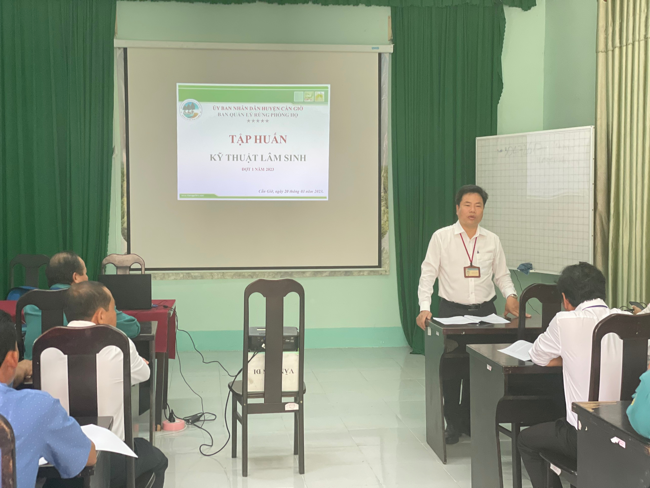 Ngày 20 tháng 3 năm 2023, Ban Quản lý rừng phòng hộ huyện Cần Giờ tổ chức chương trình tập huấn kỹ thuật Lâm sinh, nghiệp vụ bảo vệ rừng năm 2023 đợt 1 cho 18 viên chức, người lao động thuộc các đơn vị trực thuộc Ban tại Hội trường Hoa Đước - Ban Quản lý rừng phòng hộ; chương trình có sự tham dự của ông Cao Huy Bình - Phó Bí thư Đảng Ủy, Phó Trưởng Ban Quản lý rừng phòng hộ huyện Cần Giờ; ông Bùi Nguyễn Thế Kiệt - Đảng Ủy viên, Trưởng Phòng Quản lý Phát triển tài nguyên rừng.