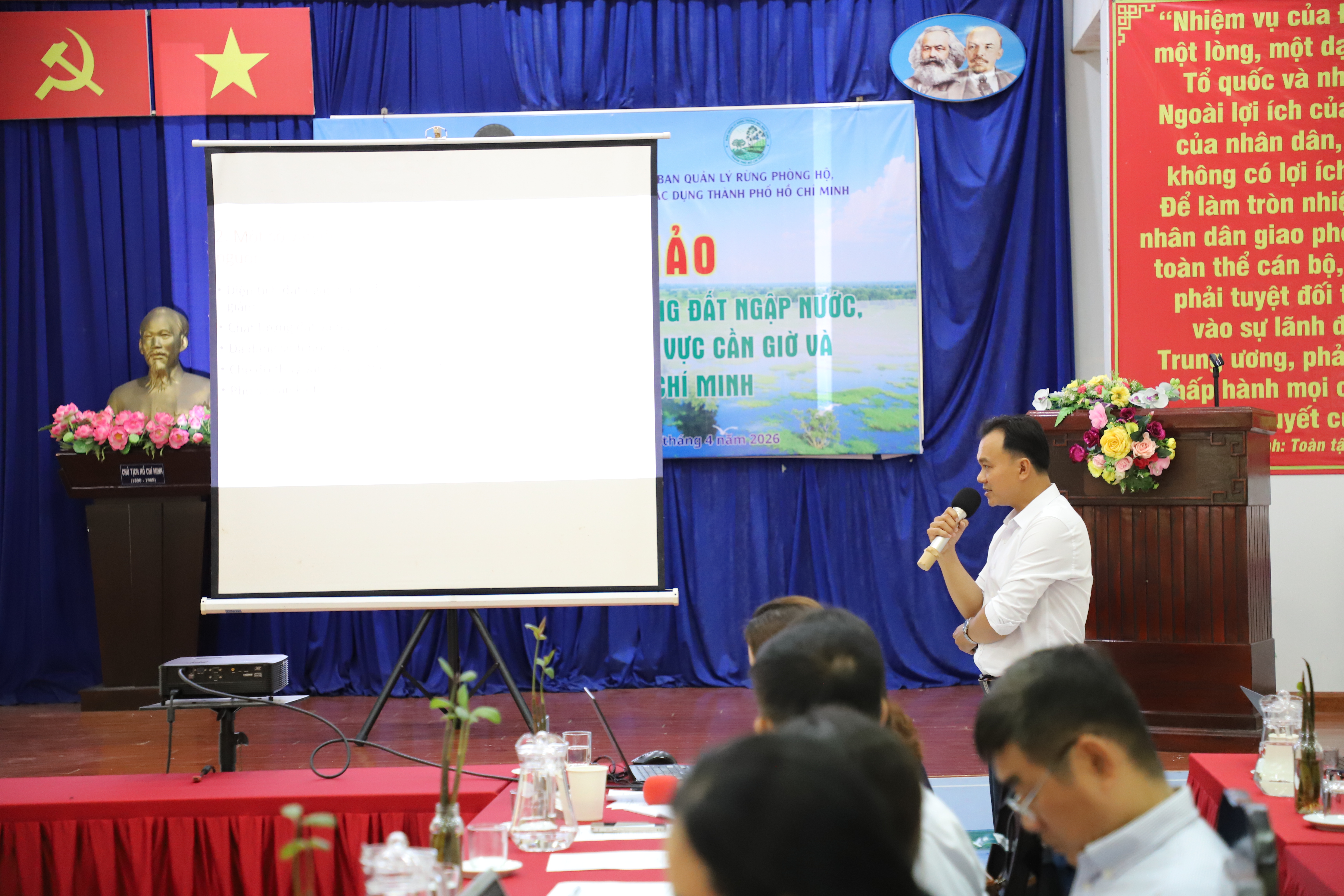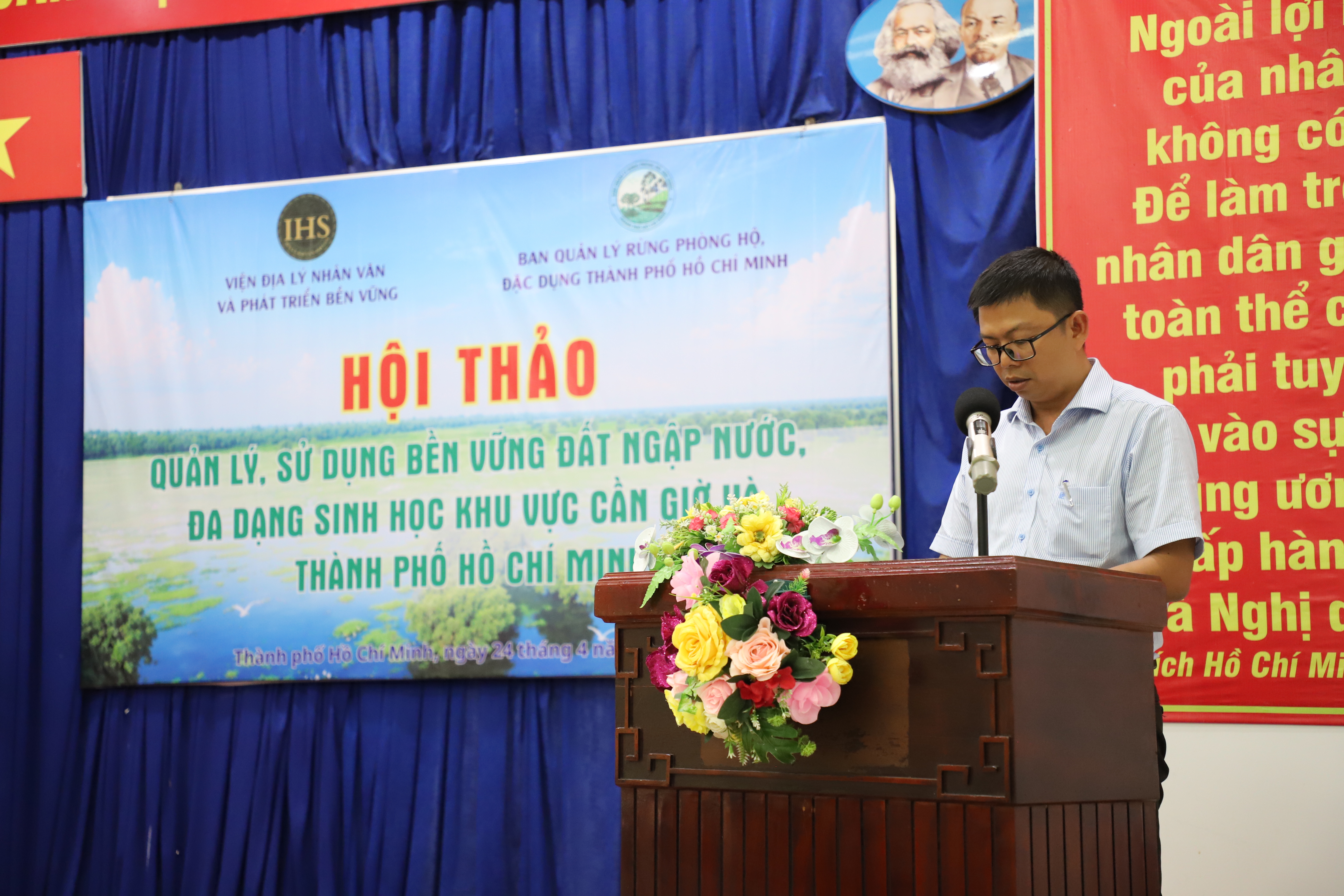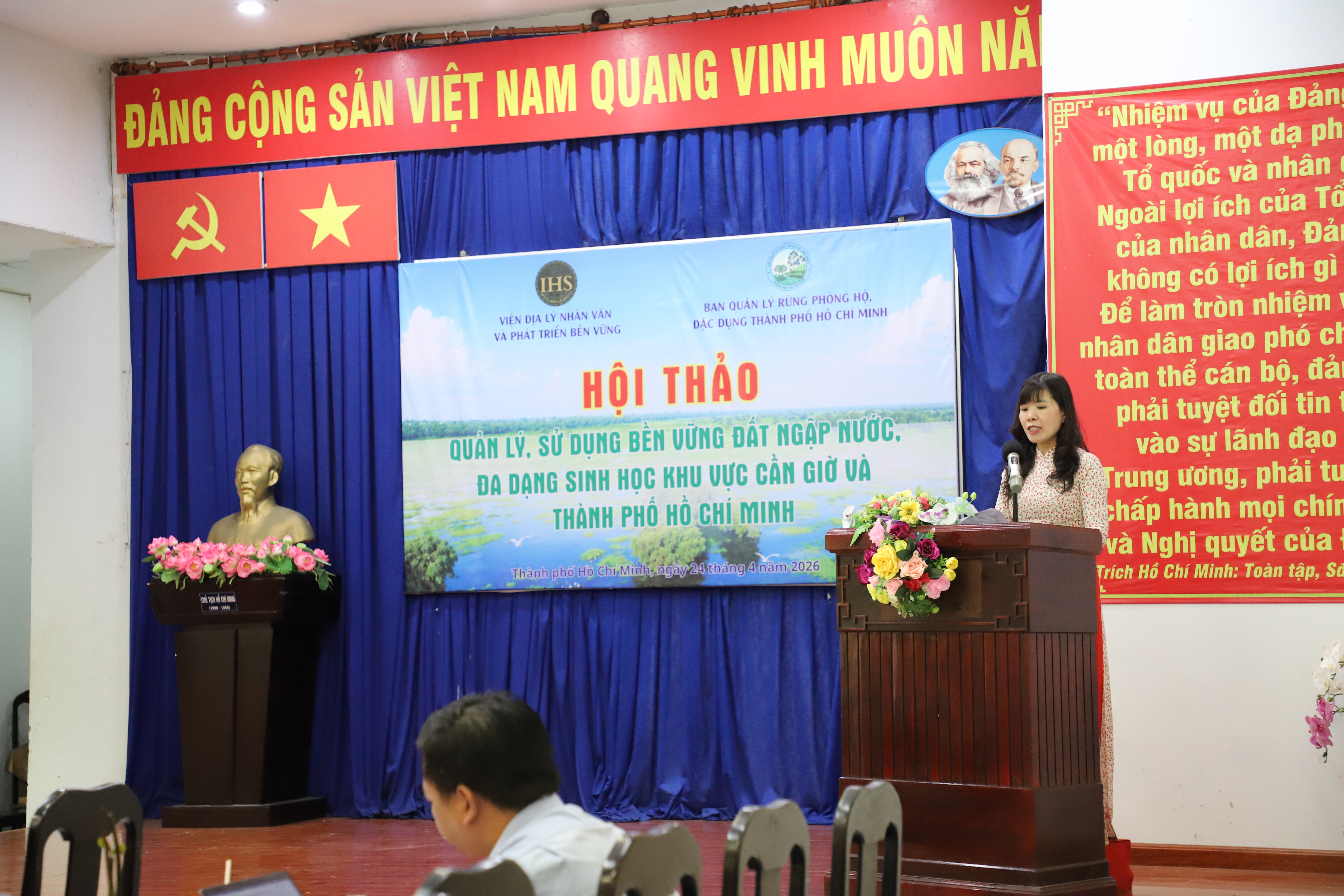 Ngày 24 tháng 4 năm 2026, Viện Địa lý nhân văn và Phát triển bền vững đã phối hợp cùng Ban Quản lý rừng phòng hộ, đặc dụng Thành phố Hồ Chí Minh tổ chức thành công Hội thảo "Quản lý, sử dụng bền vững đất ngập nước, đa dạng sinh học khu vực Cần Giờ và Thành phố Hồ Chí Minh". Tham dự hội thảo có Tiến sĩ Nguyễn Song Tùng - Viện trưởng Viện địa lý nhân văn và Phát triển bền vững, ông Huỳnh Thanh Tú, Phó Giám đốc Ban Quản lý Rừng phòng hộ, đặc dụng. Ngoài ra còn có sự góp mặt của các đại diện của Liên minh Quốc tế Bảo tồn Thiên nhiên và Tài nguyên Thiên nhiên (IUCN), Cục Bảo tồn thiên nhiên và Đa dạng sinh học, Liên hiệp các Hội Khoa học và Kỹ thuật Việt Nam (VUSTA) và các nhà khoa học, giảng viên đến từ các trường đại học, các viện nghiên cứu khoa học trên địa bàn thành phố.