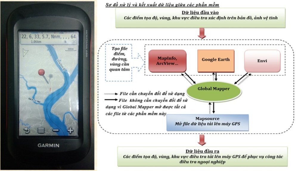 Ứng dụng phần mềm Global Mapper để hỗ trợ chuyển đổi và liên kết các dữ liệu kết xuất từ các phần mềm nêu trên nhằm: (1) Có thể mở được trong tất cả các phần mềm khác; (2) Kết xuất dữ liệu trực tiếp vào máy định vị GPS để kiểm tra, khảo sát ngoài thực địa.