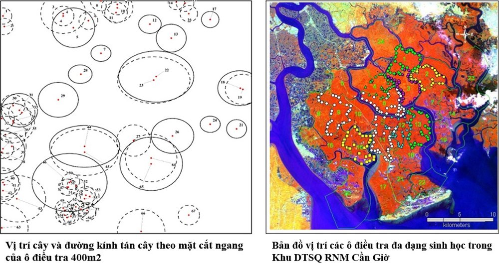 Bản đồ vị trí các ô điều tra đa dạng sinh học trong Khu DTSQ RNM Cần Giờ