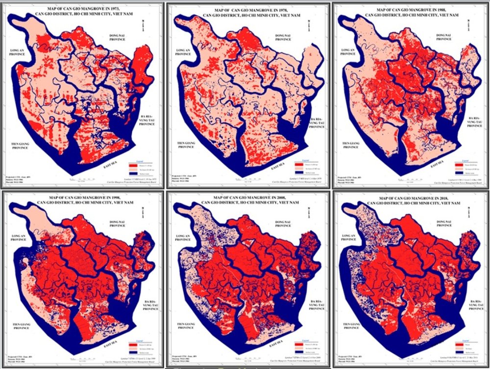 Sử dụng ảnh viễn thám đa thời gian bao gồm 05 bộ ảnh Landsat 4 - 5 (TM) và 01 bộ ảnh Landsat 8 Operational Land Imager (OLI/TIRS). Ảnh Landsat được cung cấp bởi U.S. Geological Survey (USGS) tải miễn phí tại website www.global.usgs.gov của trung tam NASA (Hoa Kỳ). Kết quả xây dựng là bộ bản đồ số hóa về diễn biến tài nguyên rừng ngập mặn Cần Giờ từ năm 1973 đến nay 2018 (chu kỳ 10 năm).